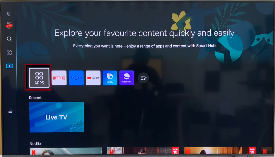 Press the Home button on your remote to go to the home screen. Look for a row of icons, and among them, you will find one labeled “Apps”. Select it to enter the App Store for your Samsung Smart TV.